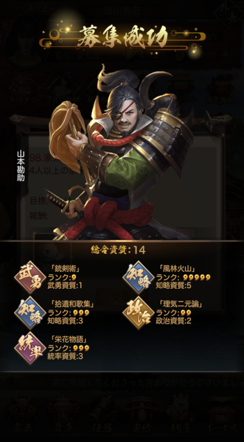 たぶん、まだ載せていない人達及び今回イベントの人達です。イベントは、今日で終わりだったような?そこそこ頑張れたから、もういいやと朝の時点で終了気分です。今回の人達、蘭丸君を除いてオッサンですね。いや、