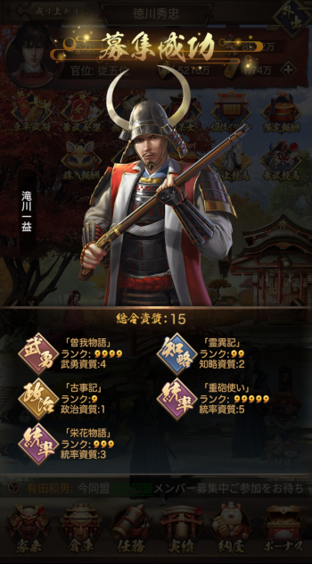 たぶん、まだ載せていない人達及び今回イベントの人達です。イベントは、今日で終わりだったような?そこそこ頑張れたから、もういいやと朝の時点で終了気分です。今回の人達、蘭丸君を除いてオッサンですね。いや、