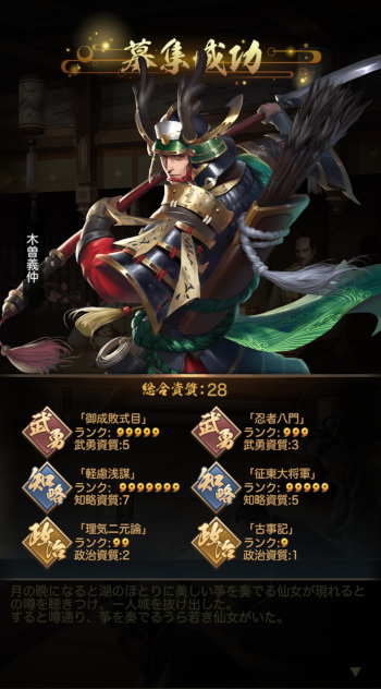 あと新しい源氏な人、というか木曽義仲ゲット!(ちょっと嬉しい)