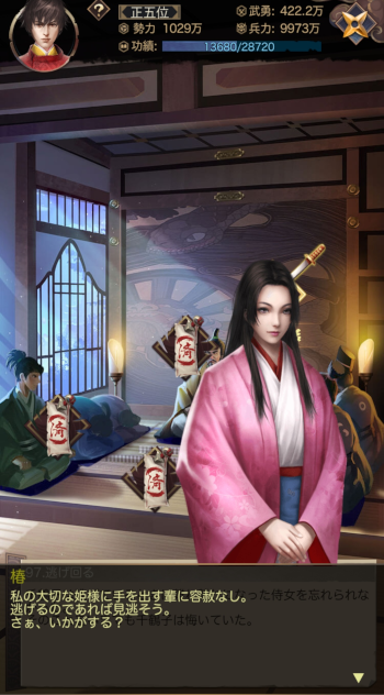 このゲーム、ふと振り返ってみると、ピンク色のお着物のひと多いですね。