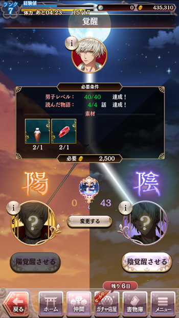 でもキャラによっては(特にレベル低いキャラは)陰陽でも変わらない(衣装の色だけ変わるとか)場合があったりします。