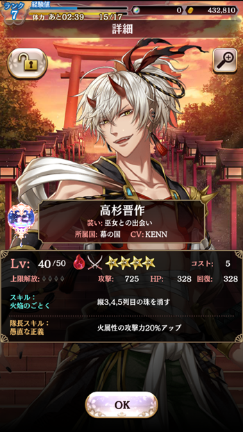 でも今のところ、晋作を月のかけらで交換する気は無いです。