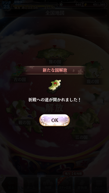 現の国、江の国での戦闘中に、数ランク上がった気がします。(もうよく覚えてない~)