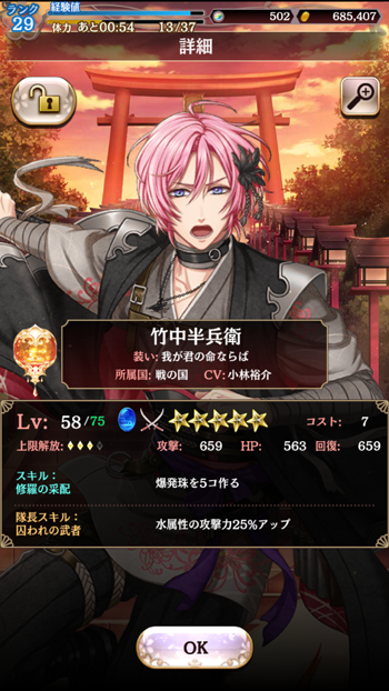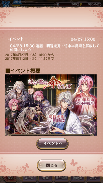 今回キャプチャで一応取りましたが(でもって小さいかな?ですが)イベントキャラの片割れ、光秀さんを覚醒するため!です。