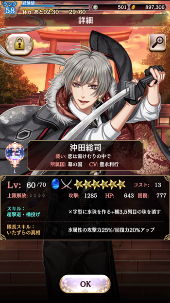 御神酒をゲットしたので、ペンディング中だった総司君を早速覚醒♪