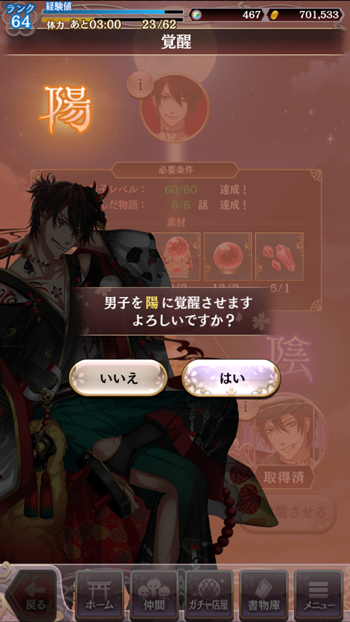 結局、お兄チャン2人と引き替えて~1人は陰覚醒のお兄チャン限界突破?に使用。