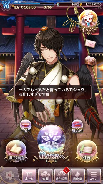 ストーリー自体は、普段より一層ラリってますカラスさん&欠食児童のニニギ、あくまで知的探究心最優先のオモイカネというそれぞれの方向に走ってく人達の中で、唯一、オロチさんの優しさが光る、といったモノだった気がします。