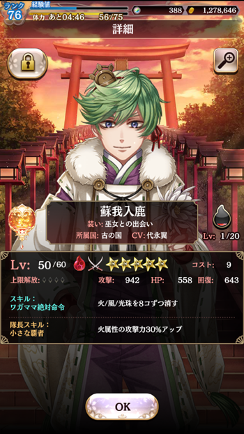 月のきらめきゲットしようかと思ったのですが、ドロップしてきたヤタガラス君は結局鍛錬に使って、陰陽共にMax状態まで引き上げました。