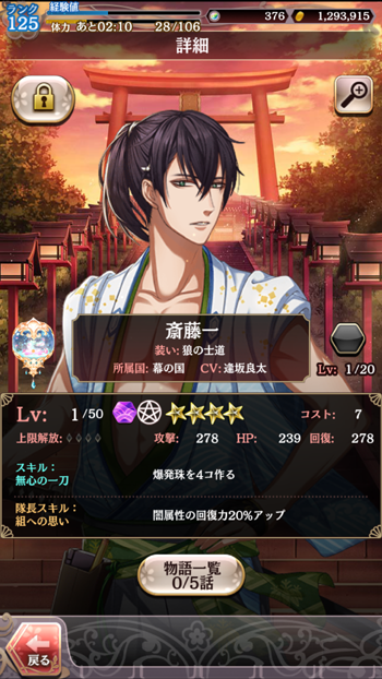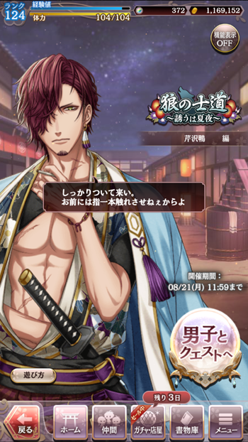 たぶん、まだ載せていない人達及び今回イベントの人達です。イベントは、今日で終わりだったような?そこそこ頑張れたから、もういいやと朝の時点で終了気分です。今回の人達、蘭丸君を除いてオッサンですね。いや、