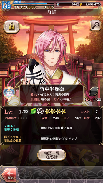 たぶん、まだ載せていない人達及び今回イベントの人達です。イベントは、今日で終わりだったような?そこそこ頑張れたから、もういいやと朝の時点で終了気分です。今回の人達、蘭丸君を除いてオッサンですね。いや、