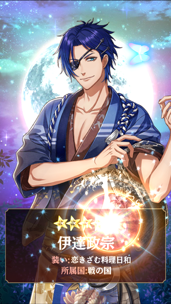 あと、一日一回無料ガチャで、何故か政宗ゲットしちゃったのでそのスクショ。
