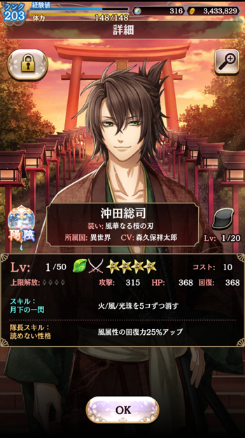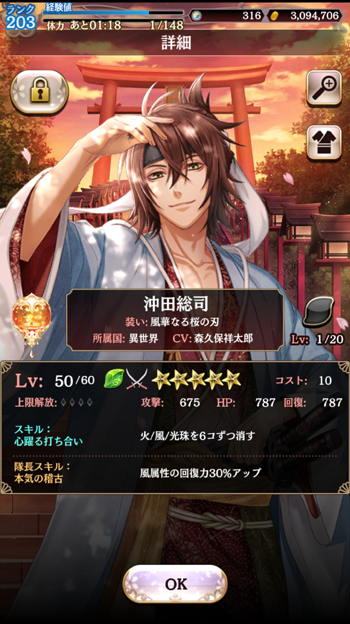 現在イベント(初めてのコラボイベント?)のキャラをイベントガチャでゲットした記念のキャプチャであります。