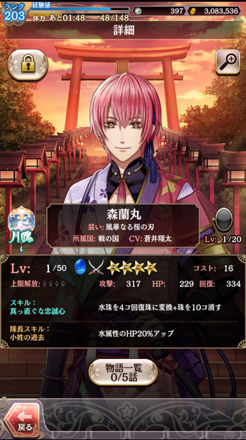 たぶん、まだ載せていない人達及び今回イベントの人達です。イベントは、今日で終わりだったような?そこそこ頑張れたから、もういいやと朝の時点で終了気分です。今回の人達、蘭丸君を除いてオッサンですね。いや、