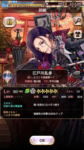 たぶん、まだ載せていない人達及び今回イベントの人達です。イベントは、今日で終わりだったような?そこそこ頑張れたから、もういいやと朝の時点で終了気分です。今回の人達、蘭丸君を除いてオッサンですね。いや、